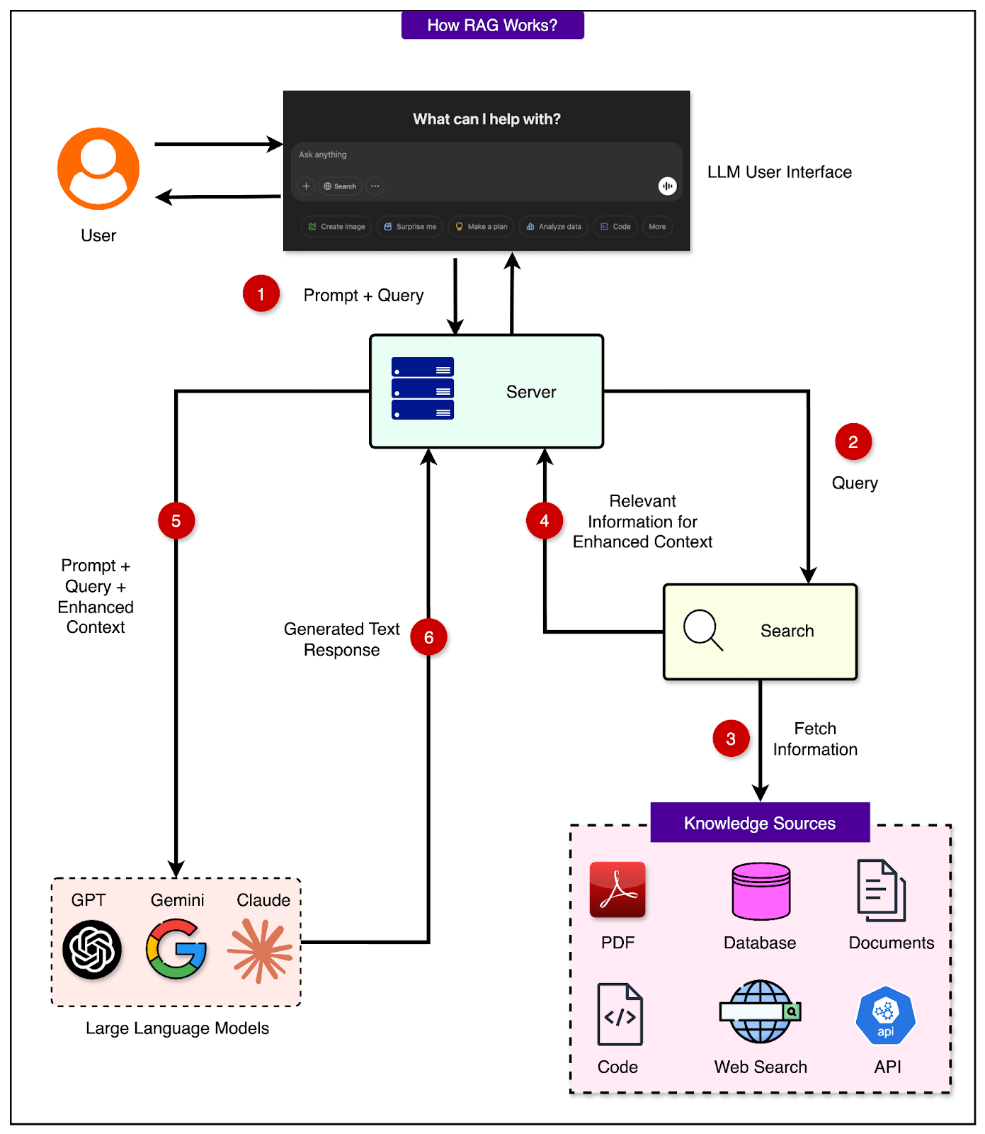 Retrieval-Augmented Generation, or RAG, fixes this by grounding generation in real documents. Here’s how it works: