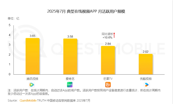 从月度活跃用户数量来看,腾讯视频以3.65亿用户暂时领先,排名首位。紧随其后的是爱奇艺,月活用户达3.58亿,两者之间差距极小,显示出该领域的竞争日趋激烈。排在第三位的并非传统平台优酷视频,而是芒果TV,其月活跃用户达到2.84亿。优酷视频则以2.02亿月活用户位列第四,与其他三大平台存在一定距离。