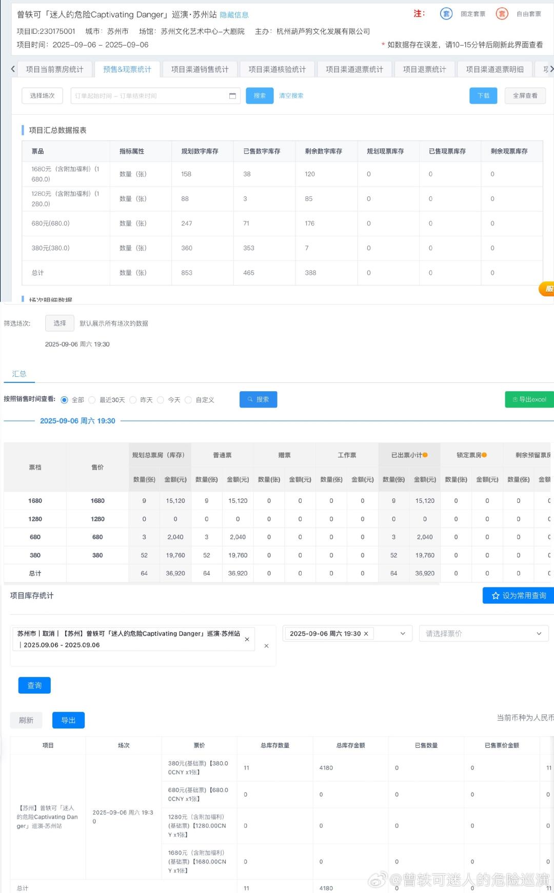 ● 曾轶可演出主办方在网络直接公开售票数据。图源:微博