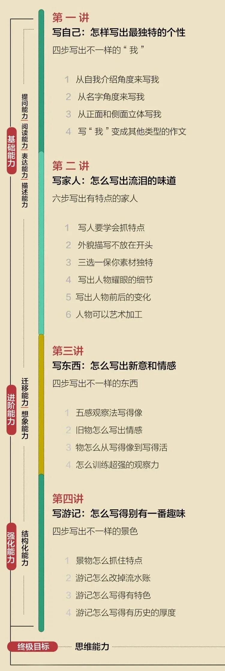 🚀 **系统训练提升综合能力:** 该创意写作课程不仅涵盖写人、记事、写物、写景等多种写作主题,还包括名篇精读和习作模仿。通过“启发-写作-精读-点评”的模式,系统性地提升孩子的写作水平、阅读量和自信心,让他们成为真正的小作家。