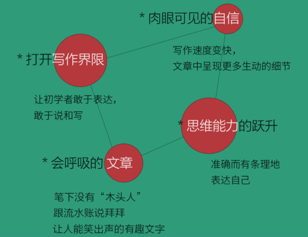 思维导图是一种有效的训练思维方法,它可以充分发挥了大脑中“联想”与“想象”的特点,英国查尔斯王子曾用它来提高记忆力,世界500强企业也组织员工系统学习思维导图。在课程中,主讲人也会利用思维导图的特点,将简单有效的关键词、图像、颜色、曲线运用到作文教学中,在启发式的问答和讲解中,培养孩子的提问能力、阅读能力、想象力、表达能力和描述能力。继而养成孩子的结构化能力,最终形成思维能力。课程不但涵盖写自己、写家人、写事物、写游记等四大主要写作主题,而且设置了名篇精读、习作模仿环节。通过启发——写作——精读——点评的模式,逐步引导孩子自发性地拓展写作思维,完善结构和细节,大大提升写作水平和阅读量。经过训练,你会发现孩子对于写作不再惧怕,反而拥有了肉眼可见的自信。每个孩子,都是小作家。