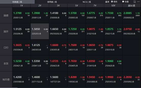 业内人士表示,上午债市整体偏强,与市场风险偏好的回落有关。股债逐渐脱敏,但近期债市没有自发的多头动能,包括隔夜利率下台阶、买债传闻等前期利好都已经被消化,并没有换来利率的下行。