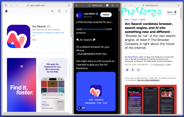 至於The Browser Company是由曾擔任白宮產品總監的Josh Miller,以及曾擔任Facebook工程師的Hursh Agrawal於2019年共同創辦,現在分別擔任執行長與技術長,目的是打造一款可解決使用者瀏覽及生產力問題的網頁瀏覽工具,讓瀏覽器成為網路作業系統,於2023年發表奠基於Chromium專案的Arc 1.0,並在去年10月宣布將不再繼續開發新版本的Arc,轉而在今年6月發表AI瀏覽器Dia。