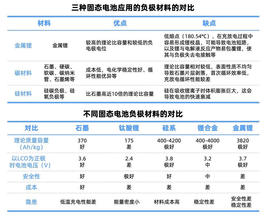 目前固态电池的负极材料主要有碳族负极、硅基负极和金属锂负极三类。