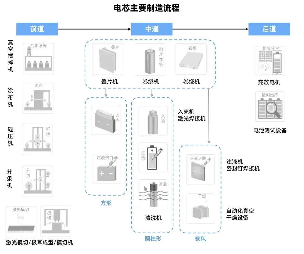 当前半固态电池已经实现量产,设备需求主要集中在涂布机、辊压机、注液机、化成分容设备等。