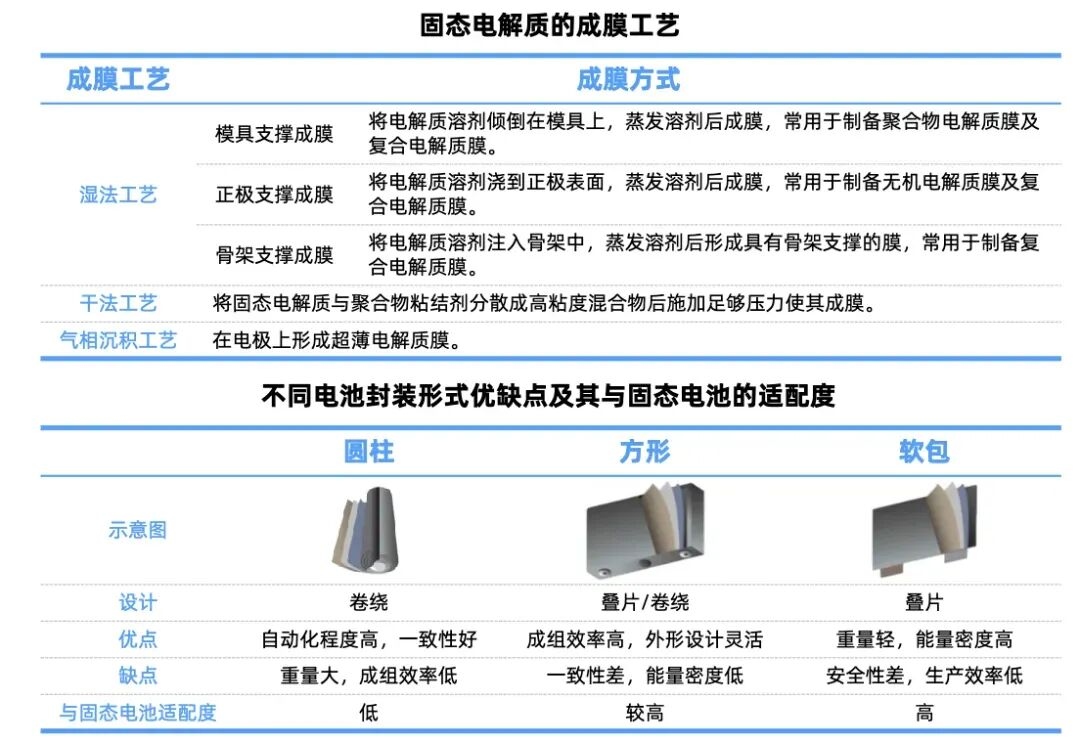 固态电池制造方面,目前主要以湿法为主,干法工艺逐步突破。