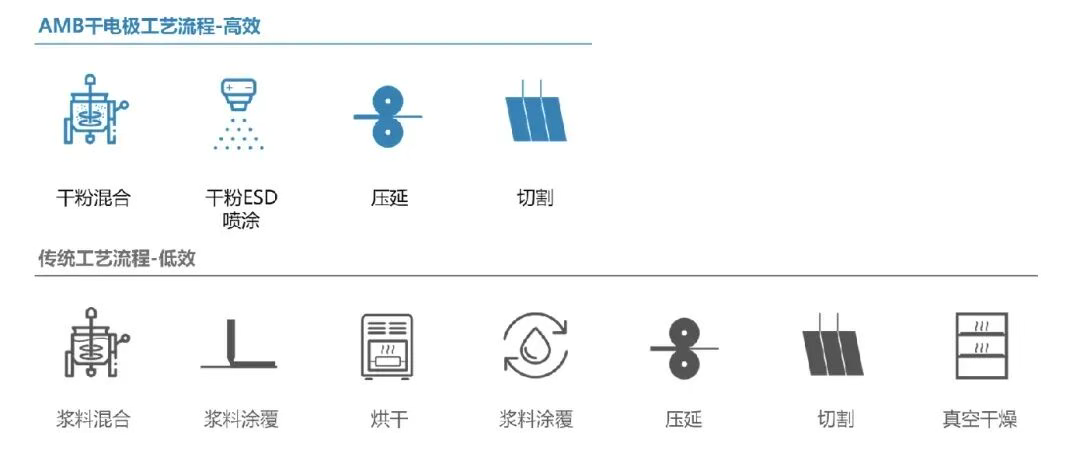 AMBatteries干电极技术与传统锂离子电池生产流程对比: