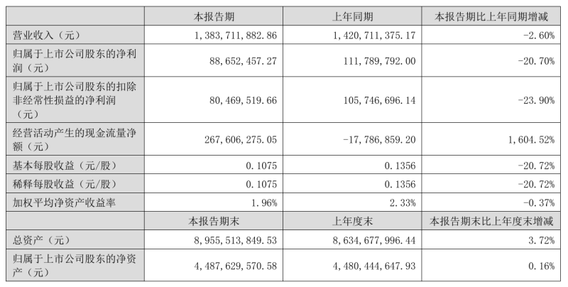 财报显示,2024年,东诚药业实现营业收入28.69亿元,同比下降12.42%;归属净利润1.84亿元,同比下降12.35%。今年上半年,公司实现营业收入13.84亿元,同比下降2.60%;归母净利润为8865.25万元,同比下降20.70%。