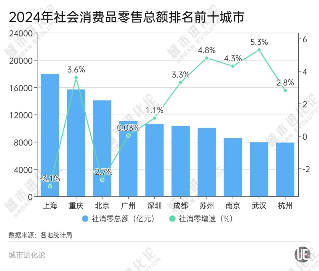 它们也是在苏州社消零破万亿后,离“万亿消费俱乐部”最近的三座城市。此前,南京曾提出目标,到今年全市社消零总额突破10000亿元;武汉和杭州则分别把社消零达9000亿元的时间定在今年和2027年。