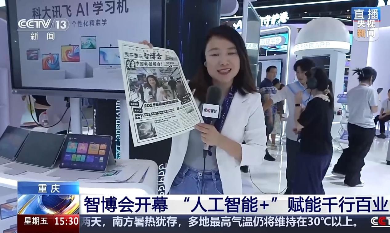 科大讯飞展台也受到众多媒体关注。9月6日央视《新闻直播间》记者在直播中来到科大讯飞展台,体验前沿项目。记者表示,“我发现‘人工智能+’已经完全地融入了我们的生产、生活、学习。”