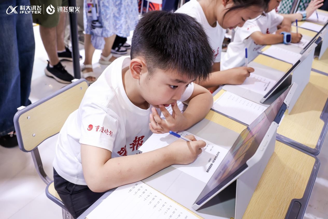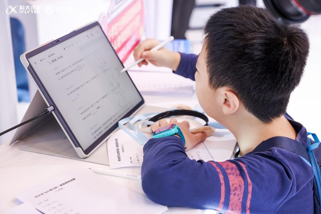 小朋友在体验科大讯飞AI学习机。