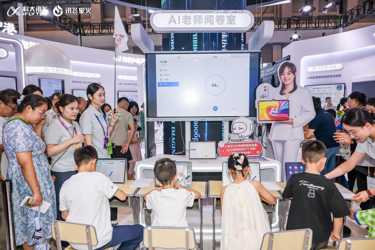 为什么科大讯飞会成为最受小孩哥/姐欢迎的展台?一位刚体验完智能机器人和飞行汽车展台的小朋友说:“我感觉科大讯飞的高科技离我们生活很近,最能帮助到我学习。”