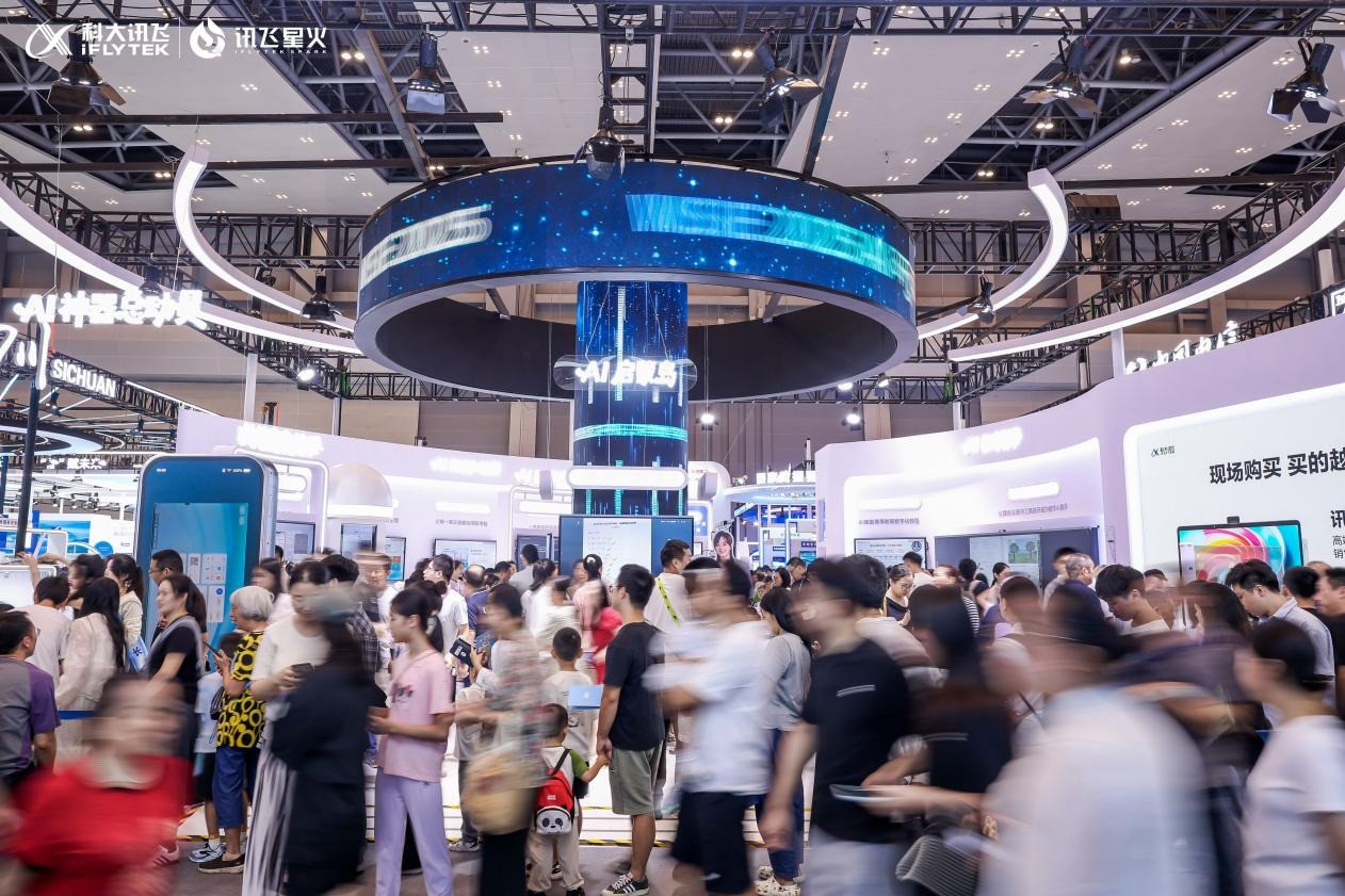 9月7日,重庆智博会科大讯飞展台前人流如织。
