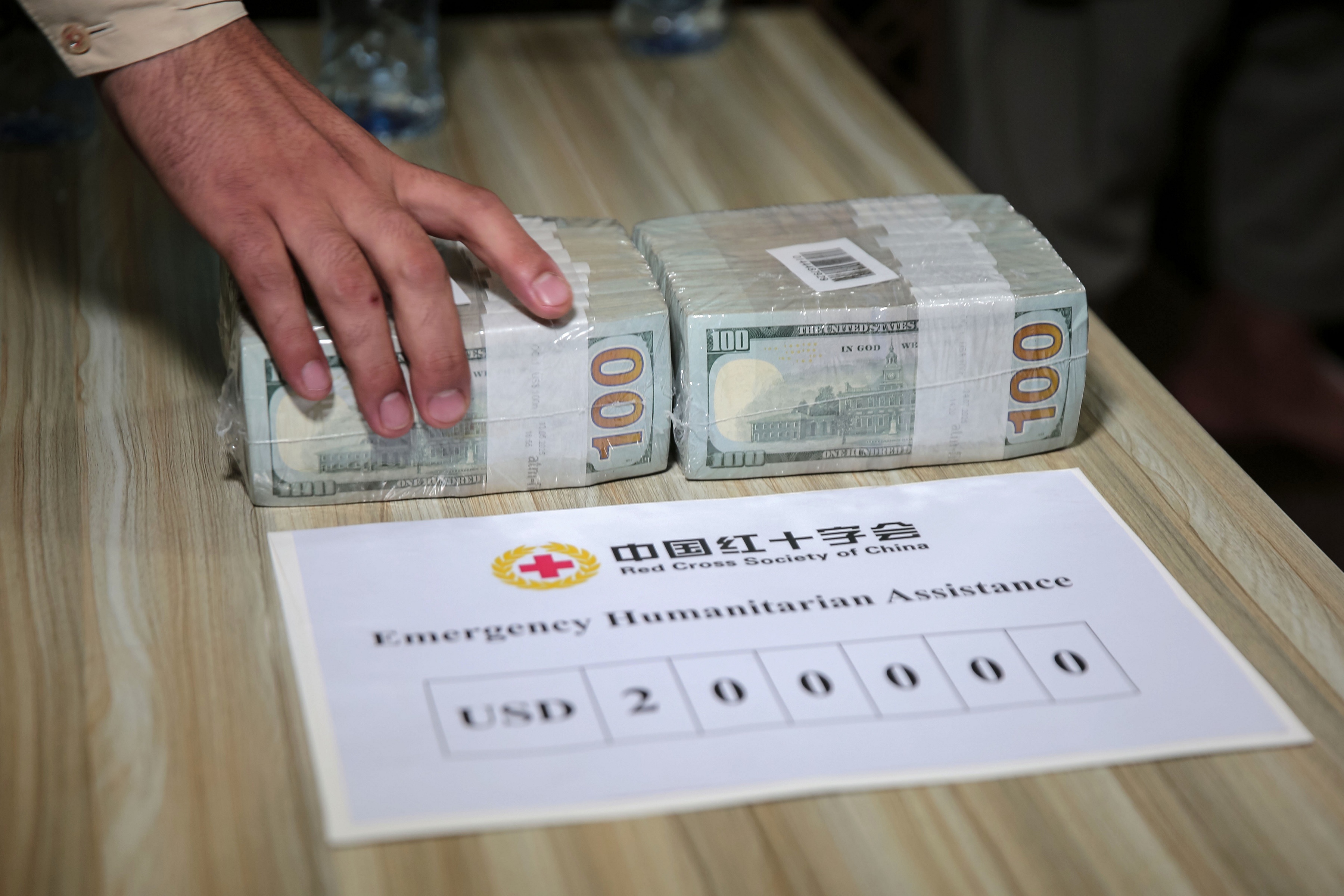 阿富汗红新月会接收中国红十字会为地震灾区提供的现金援助,喀布尔。9月5日,中国驻阿富汗使馆临时代办会见阿富汗红新月会会长并转交中国红十字会提供的20万美元紧急人道主义现金资助,用于支持阿方开展抗震救灾工作。阿富汗东部6.1级地震迄今已造成超过2205人死亡、3640人受伤、6700栋房屋被毁。世界卫生组织指出阿富汗目前的医疗援助资金缺口达到400万美元,迫切需要国际社会提供支持。摄影师:Samiullah Popal
