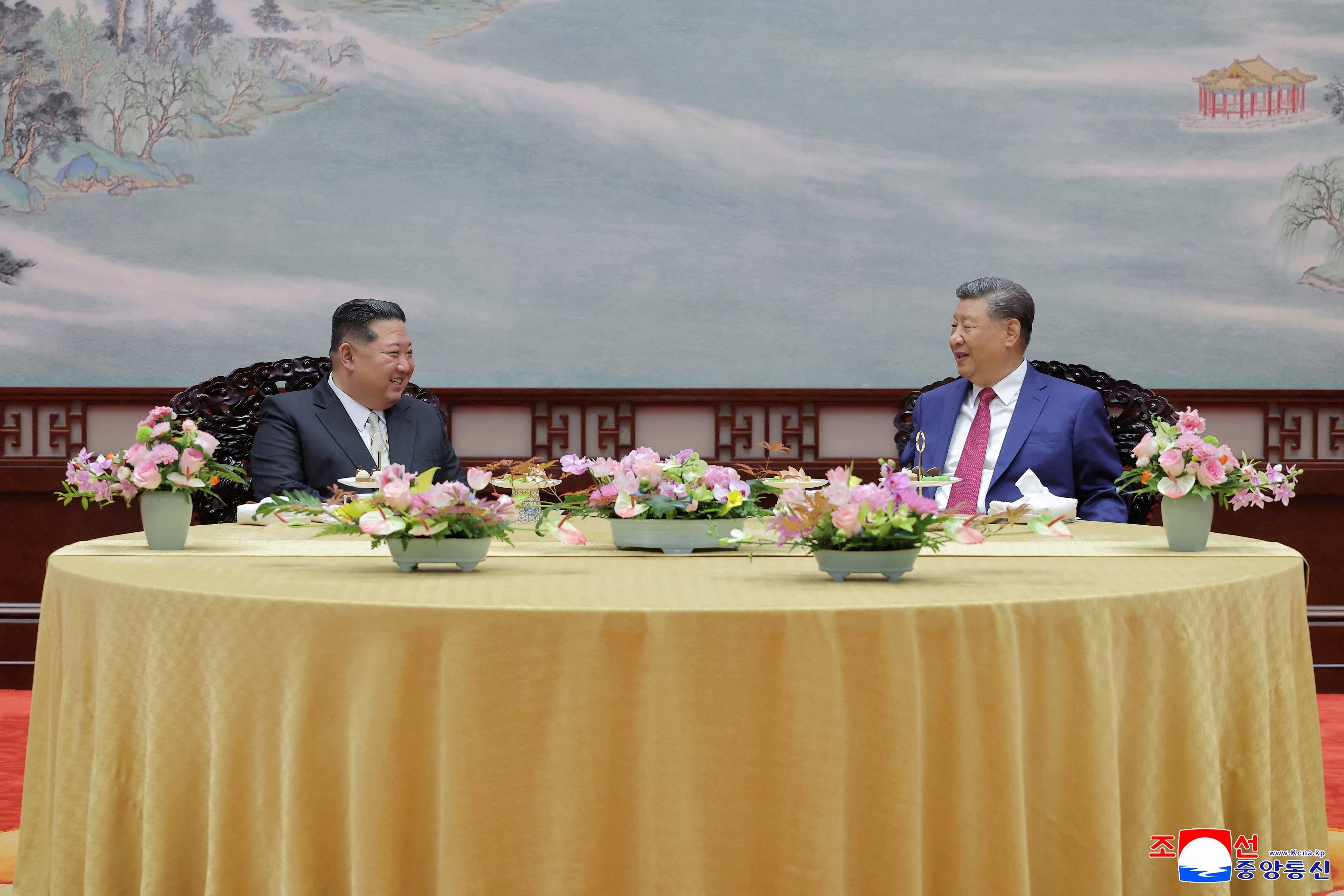 中国国家主席习近平与朝鲜最高领导人金正恩举行茶叙,北京。9月4日,中朝领导人时隔6年举行面对面会晤,双方在约1小时会谈中就中朝关系、务实合作、朝鲜半岛问题及国际和地区事务交换意见。习近平表示,中国党和政府高度重视中朝传统友好,愿同朝方加强高层交往和战略沟通,密切各层级互动,开展各领域务实合作。金正恩表示,朝中之间的友好感情不会改变,朝方将继续在涉及中国核心利益的问题上坚定支持中方立场,朝方赞赏中方在朝鲜半岛问题上的公正立场,愿在联合国等多边平台继续加强协调,维护好双方的共同和根本利益。摄影师:KCNA