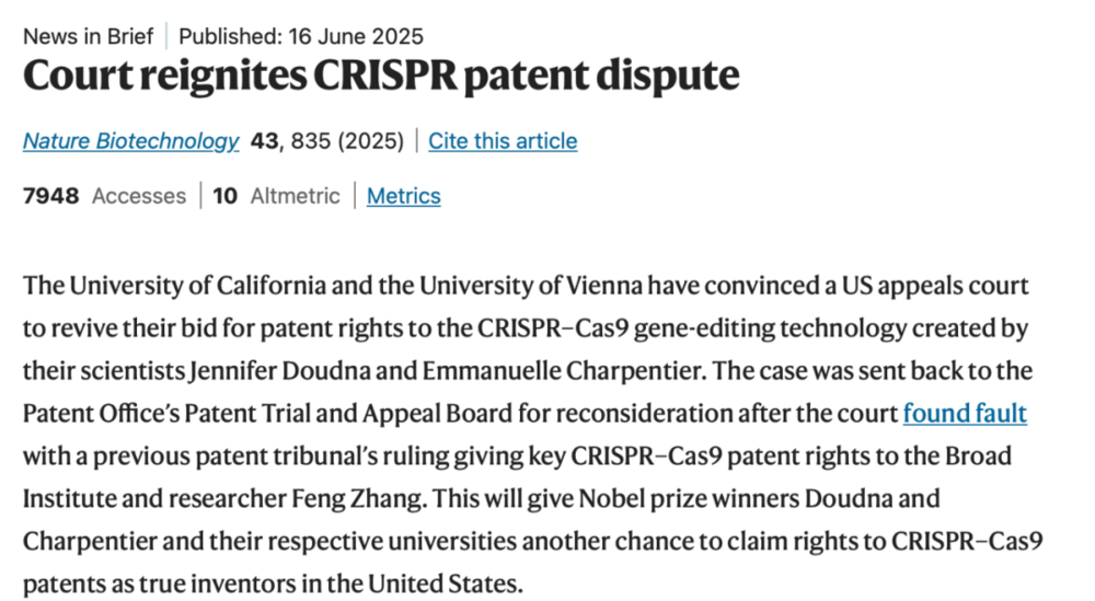 丛乐:或者至少说它应该也看上去值这么多钱。那么就到第二点,至少可以说,它的价值足以支撑如此高昂的诉讼成本。更重要的是,当时确实有多个独立研究组,分别在不同的时间、不同地点,甚至不在美国,都在推进CRISPR基因编辑。这也使得整个专利归属的法律争议格外复杂。