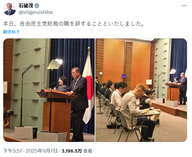 昨天,日本首相石破茂宣布将辞去自民党总裁一职。并且,他还在当地时间7日下午6点召开记者会,向海内外人士宣布其辞任的决心。