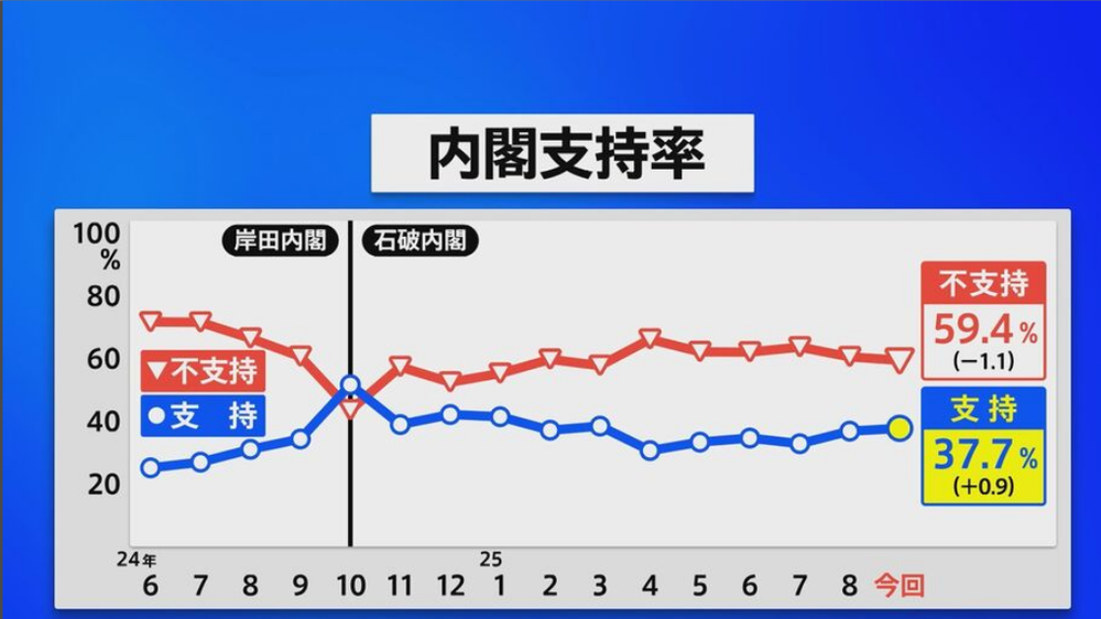 尽管这一个月的民调显示,石破茂的支持率有所上升,但他仍面临着四面楚歌。自民党内部“乱成一锅粥”,讨论着现任首相的去留问题。