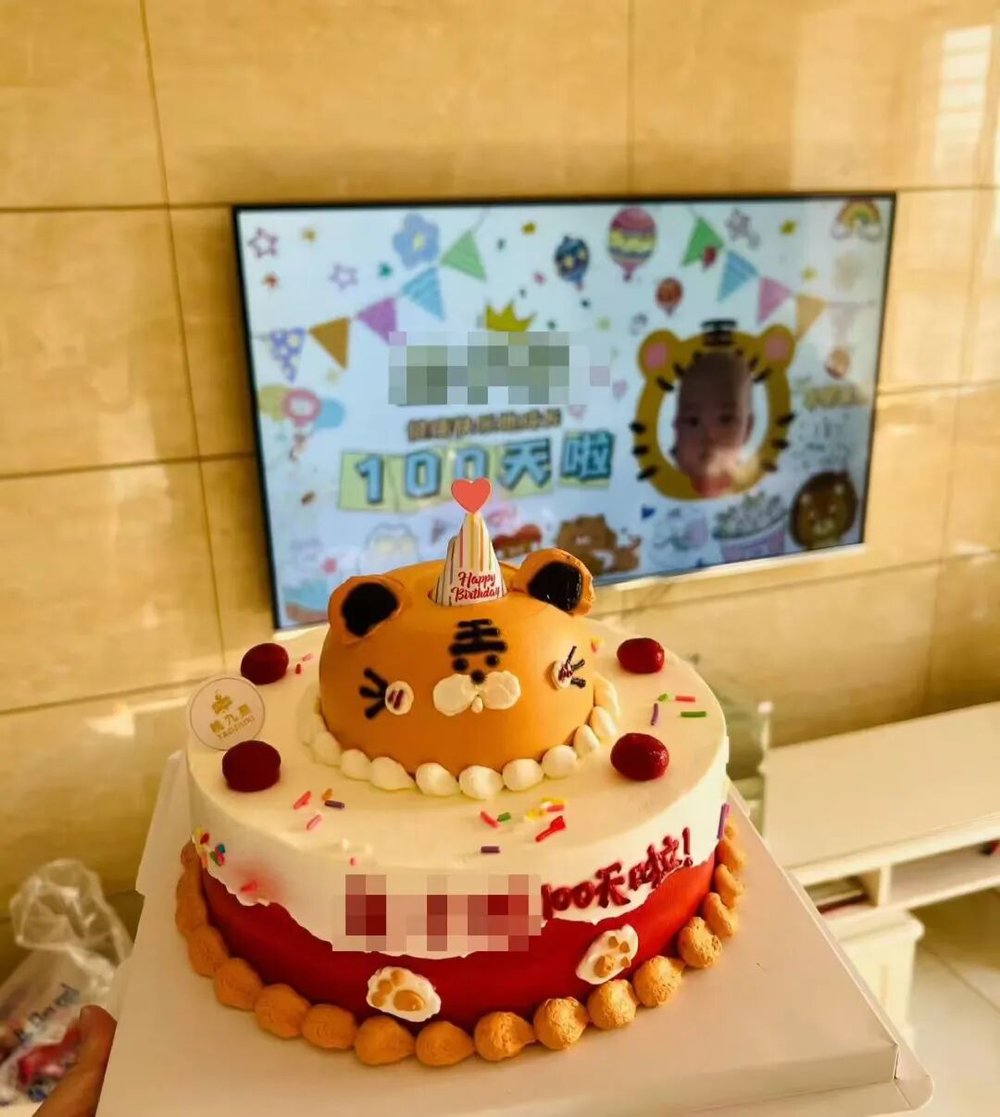 刘雨卿在微博上晒出儿子的百日蛋糕