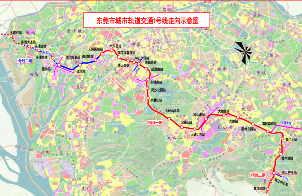 东莞1号线走向示意图(图源:东莞轨道交通官网)