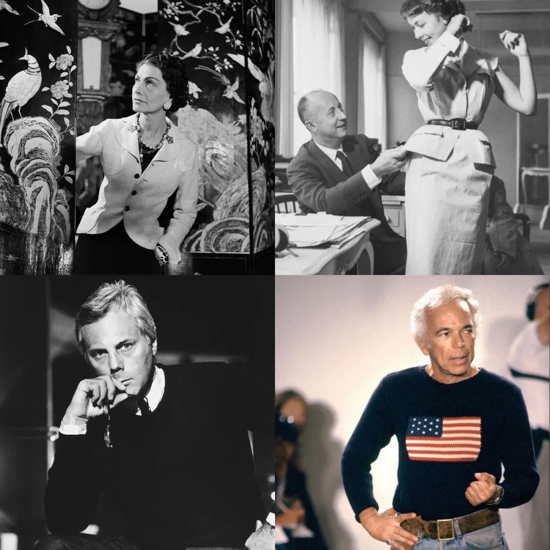 左上:Coco Chanel, 右上:Christian Dior,左下:Giorgio Armani, 右下:Ralph Lauren