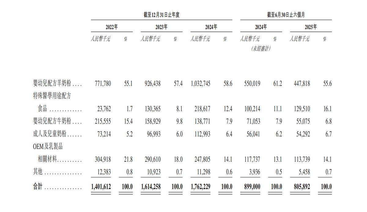 从营收结构上看,2022年到2025年上半年,公司婴配羊奶粉的营收占比从55.1%一度增长到58.1%,2025年上半年,占比来到55.6%。结构变化并不大,即便是到2024年底,也只是提升了3%的占比。