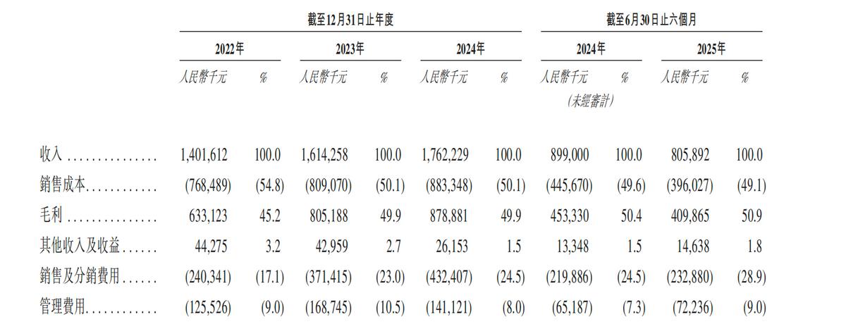 招股书显示,2022年到2024年,宜品集团营收快速增长,从14.01亿迅速增长到17.62亿。但到了2024年上半年,公司营收来到8.05亿,同比下滑了8.09%,2024年同期,公司营收8.99亿。