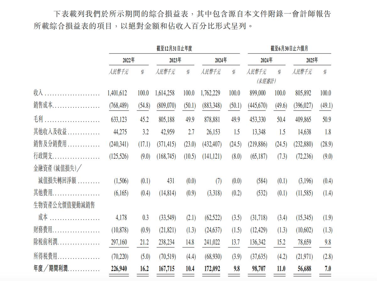 反观低毛利的OEM以及乳制品材料业务,毛利率从2022年的23.4%,下滑到2025年上半年的10.9%。并且直到2025年上半年都还有14.1%的营收占比。