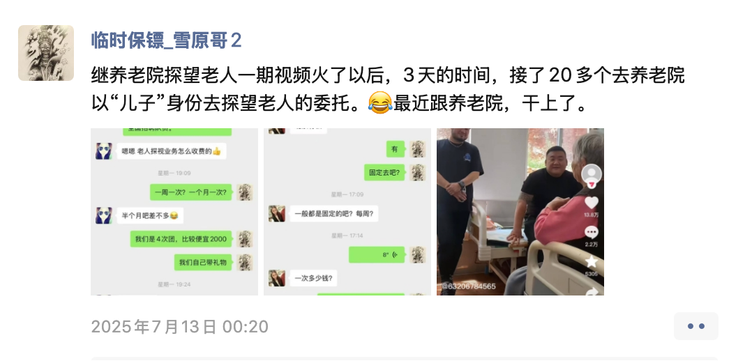 这个问题听起来很冷。当亲情变成服务,未免让人感到无奈,但换个角度看,它也是另一种守护。关键在于,谁能真正把这个角色演好?我想,这不仅是我们这一行要思考的问题,也是整个社会要面对的问题。