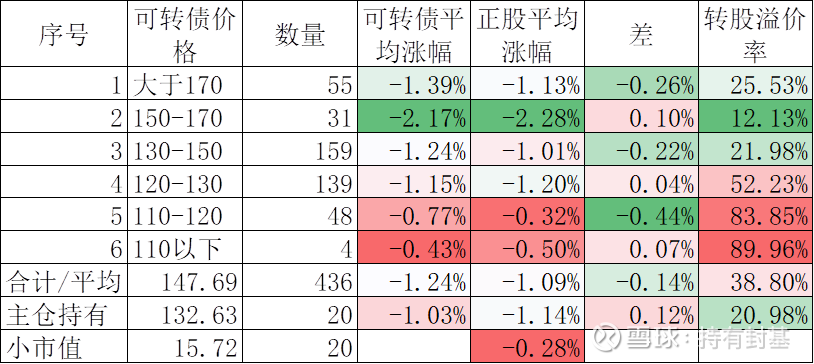 436只可转债平均下跌1.24%,对应正股平均下跌1.09%。我的主仓20只可转债平均下跌1.03%,对应正股平均下跌1.14%。今天没有任何操作,账户合计下跌1.00%,主要是今天小账户跌的少。