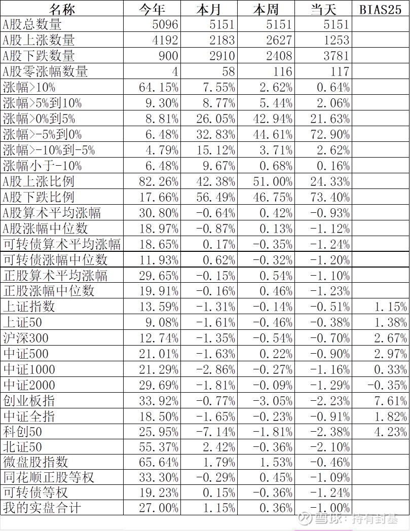 1253只个股上涨,3781只个股下跌,涨幅中位数-1.12%。