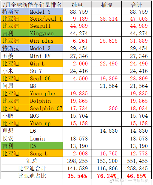 7月份是比亚迪销量增长放缓的月份,即便如此,全球新能车销量排名前20,比亚迪依然占据了10个席位。这充分说明了比亚迪产品的全球竞争力。
