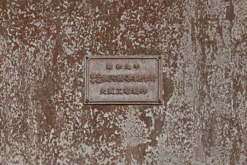 这是现存的为数不多的,写有清楚的生产时间和生产地标识的铭牌,上面写着“昭和九年横河桥梁制作所大阪工场制作”。战争机器的运转需要背后的工业和科技做支持,即便是中国东北的一座桥,它的主体钢箱梁都是日本本土制造完成的。