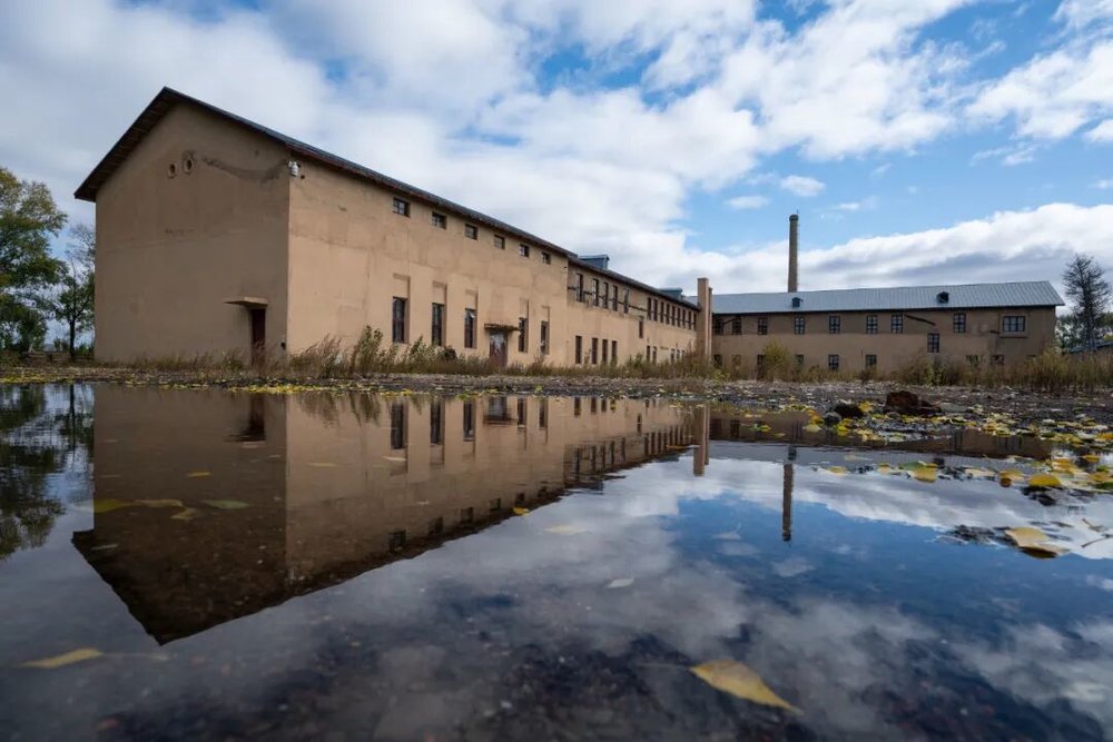 在知道这些故事之前,我拍过这样一张照片。这是我2017年开始正式拍摄后的第一张照片,那天下了雪,雪化成了水,在我还不了解这个建筑沉重深刻的历史时,我用了一个矫揉造作的方法,让它和蓝天白云一起倒映在水面上,拍了这张照片。