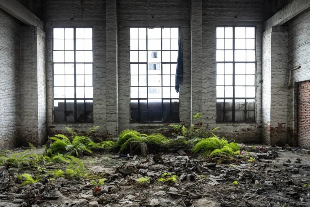 这是四川齿轮厂。绿色总是代表生命和希望,但是大家现在看一看,在这里绿色是不是代表了彻底的消亡,代表那段历史的远去?