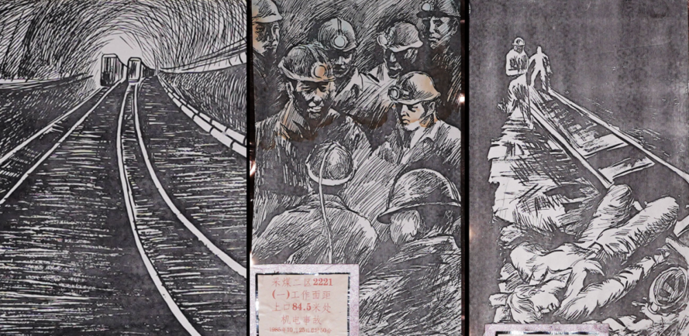 这是一个矿里的安全警示画,都是工人一点点手绘出来的。