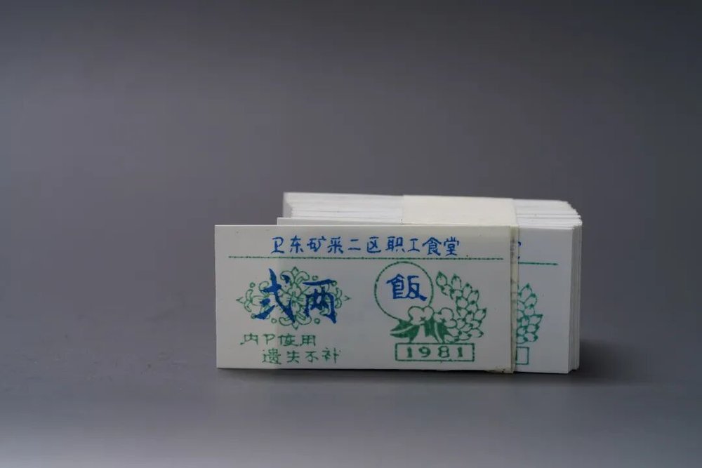 有导弹的零部件、电子管、红票之前的火车票、建筑外立面的瓷砖、粮油证、票据、洗澡的入池证、饭票、广告册、宣传册,还有老厂里会议室里的茶杯……