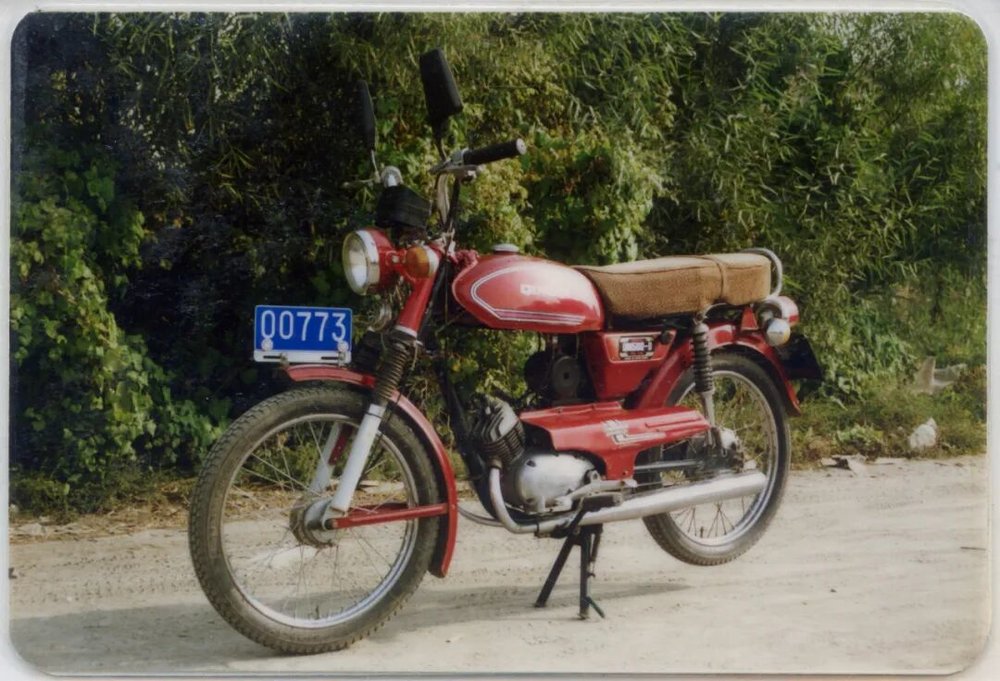 这是我爸的第一辆摩托车,车管所的干警还知道蹲下,找个比较纯的背景给它拍照。车是个很一般的车,但在照片上就显得优雅而从容。
