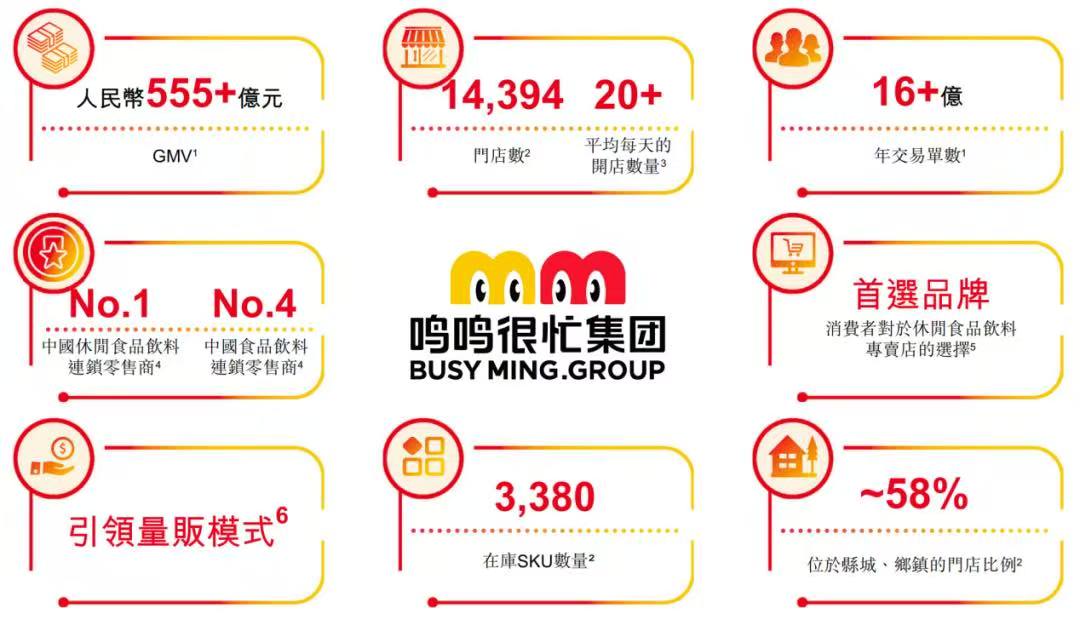 自成立以来,鸣鸣很忙凭借持续扩大的网络布局、规模效应及供应链优势,逐渐成为全国最大休闲食品饮料连锁零售商。2025年4月,鸣鸣很忙提交港股上市申请。申请文件显示,截止2024年底,鸣鸣很忙实现GMV555亿,共有14394家门店。