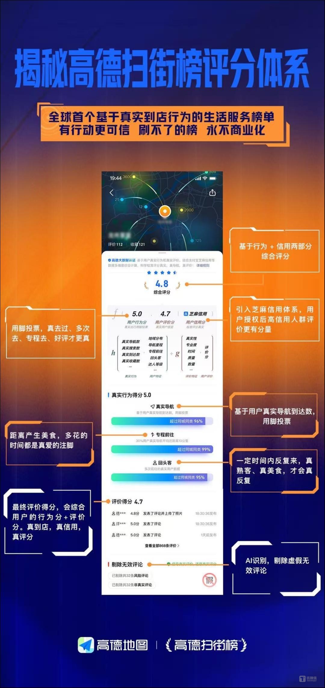 9月10日,国民应用高德正式推出了全球首个基于真实导航、出行行为,融合AI技术打造而成的生活服务榜单——高德扫街榜,构建全新的线下服务信用体系。