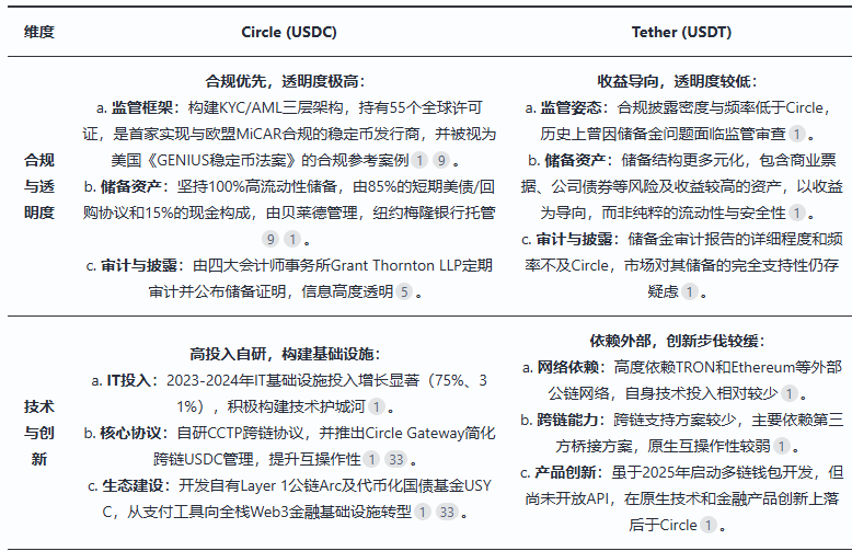 (4)Circle与主要竞争对手Tether的对比分析
