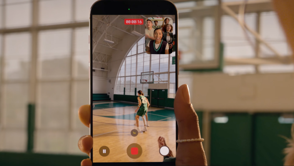 而利用这块正方形的传感器,苹果还做出了几项额外的功能:竖拍横构图、前置录像防抖、自动根据前摄画面中的人数切换画幅,以及一个都快要被大家遗忘了的安卓功能:前后双录。