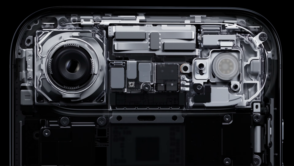 为什么这么说?因为苹果将一块A19 Pro处理器,连同主板、硬盘、前后镜头、面容模组、天线等等核心部件,全部塞进了5.6mm的机身里——更具体地说,是5.6mm的机身上额外凸起的那5mm镜头deco里。