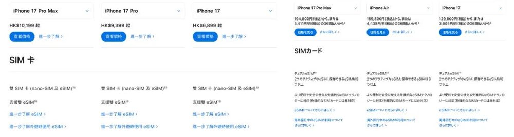 根据爱范儿查证,今年的港版看齐台版,为单实体SIM+eSIM的组合;日版则看齐美版,变成了全系纯eSIM: