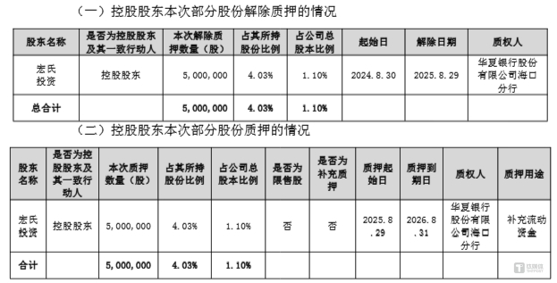 股权转让的另一重动因,正是宏氏投资严峻的资金链现状。根据康芝药业日前发布的公告,宏氏投资500万股解除质押,占其所持股份比例4.03%,占公司总股本比例1.10%;同时500万股再被质押,质押用途为补充流动资金,到期日为2026年8月31日。