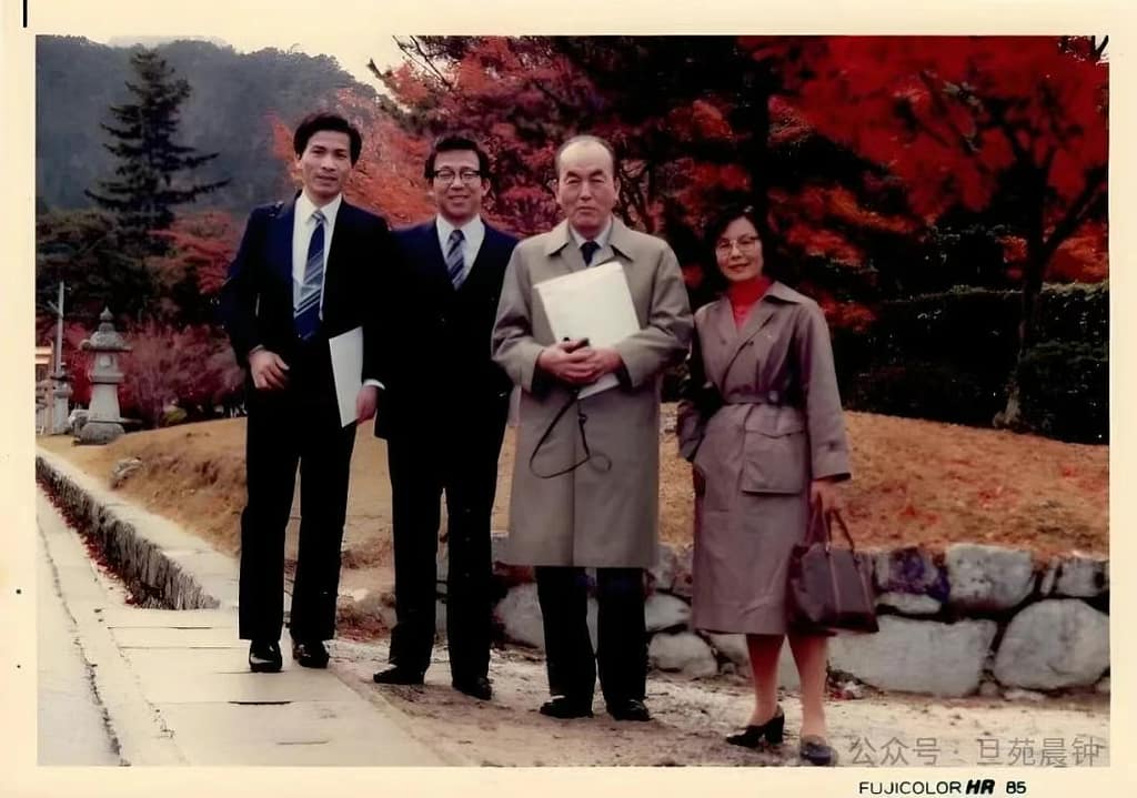 为了让我们外国人能更好地了解日本,他让毕业生捐了(毕业生离开研究室时有集体捐赠的传统)一台彩电放在谈话室,我因此看到84年洛杉矶奥运会上许海峰获得了金牌,至今记忆犹新。他还是棒球迷,带我去甲子园看过日本高中棒球选拔赛。他根据自己在荷兰留学时的体会,为了避免我们过年时会homesick(想家),新年请我们到他家里做客(图10)。85年张俐娜老师[1]作为JSPS研究员来研究室时,带我们去京都观赏红叶(图11)。