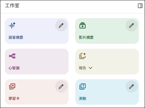 無論是報告簡介、研讀指南、常見問題整理、學習時間軸,還是心智圖、語音摘要、影片摘要,如今都能與學習卡和測驗結合,打造更完整的學習體驗。這些功能設計,正好貼近學生在學習過程中的需求,幫助快速掌握重點、測驗理解程度,進一步提升學習效率。