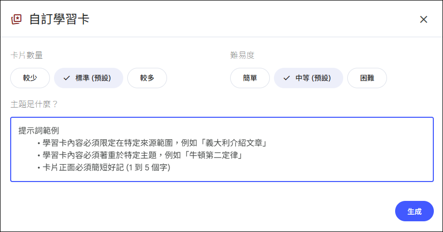 上一篇我們提到 NotebookLM可以生成中文的影片摘要,聲音摘要也可以自訂格式,甚至能自訂聲音摘要的格式。如今,正值開學季,NotebookLM 再度推出全新功能:學習卡與測驗。