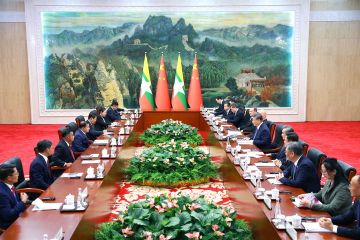 8月30日下午,国家主席习近平在天津迎宾馆会见来华出席2025年上海合作组织峰会和纪念中国人民抗日战争暨世界反法西斯战争胜利80周年活动的缅甸代总统敏昂莱。习近平强调中缅胞波情谊,深化战略合作,推进命运共同体建设。双方签署多份双边合作文件,共同维护边境安宁。