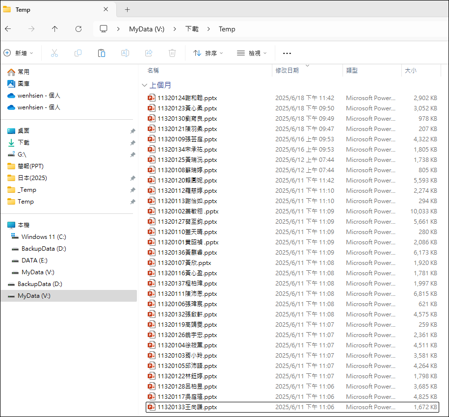 先將所有的 PowerPoint 檔複製到資料夾中。(本例:V:\Google Downloads\Temp)